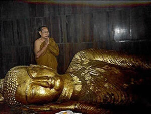 Large stone statue of reclining Buddha at the Nirvana Temple